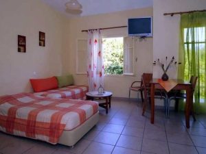 VILA LOLA (39.678150, 19.836754) nalazi se u samom centru Dasije, udaljena je oko 100 m od glavne ulice, odmah prekoputa hotela Ikos (nekadašnjeg Chandris hotela). Od plaže je udaljena oko 450 m. Ova lepo uređena i održavana apartmanska kuća sa velikim, uređenim dvorištem punim zelenila poseduje veliki bazen sa ležaljkama i suncobranim koji su gostima besplatno na raspolaganju. U blizini same vile su brojni kafe barovi, restorani, marketi, ambulanta i autobuska stanica. Vila u svom sastavu poseduje dvokrevetne studije, četvorokrevetne apartmane, kao i četvorokrevetne duplekse sa pomoćnim ležajevima raspoređene u prizemlju, na prvom i drugom spratu. Sve smeštajne jedinice opremljene su čajnom kuhinjom (štednjak sa dve ringle), frižiderom, kupatilo sa tuš kadicom, TV-om i klima uređajem (klima se doplaćuje 5 € po danu na licu mesta). U vili je dostupan WiFi, ali agencija ne garantuje za kvalitet signala i postojanost rada.