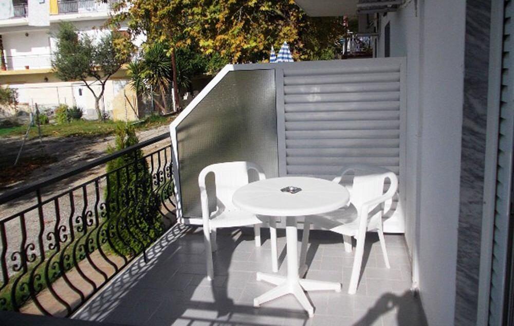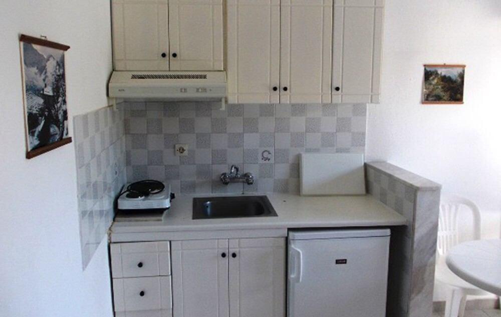 Raspolaže trokrevetnim studijima koji se nalaze na visokom prizemlju i prvom spratu. Sve smeštajne jedinice imaju kupatilo, terasu, čajnu kuhinju (sa osnovnim posuđem, frižiderom, rešoom sa dve ringle), televizor i klimu (korišćenje klima-uređaja uz doplatu  5 eura dnevno).